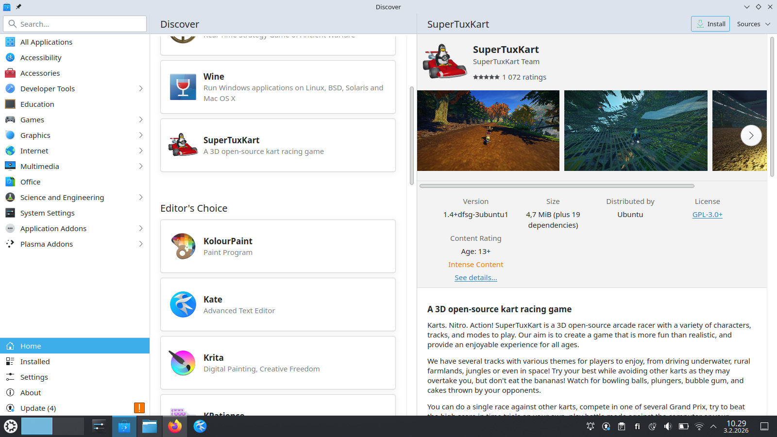 In Kubuntu, you don’t have to hunt down .exe files on random websites. Everything you need is in Discover, the built-in software center.